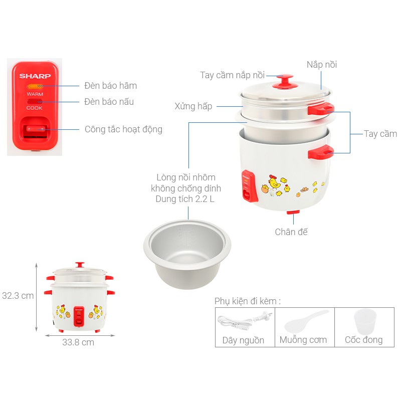 - Bộ sản phẩm gồm: Nồi cơm điện, Sách hướng dẫn