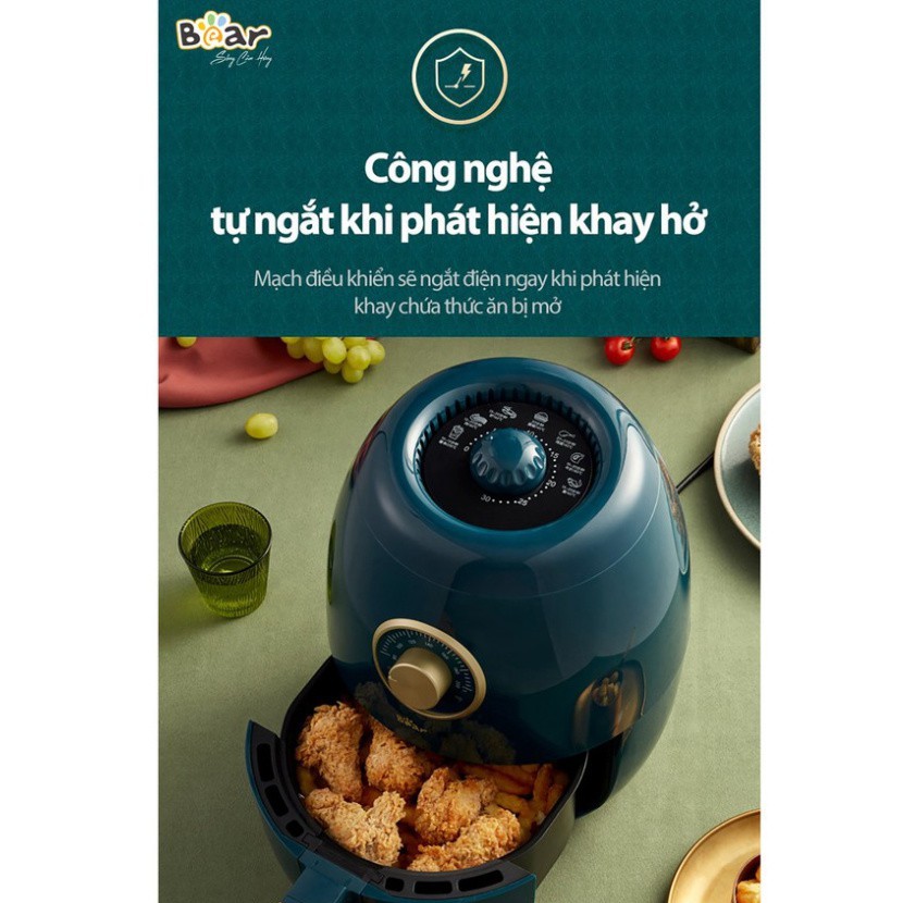 Nồi Chiên Không Dầu 3600ML Chất Liệu Cao Cấp Công Suất 1350W - Dark Green - Bản Nội Địa Bear QZG-A14D1