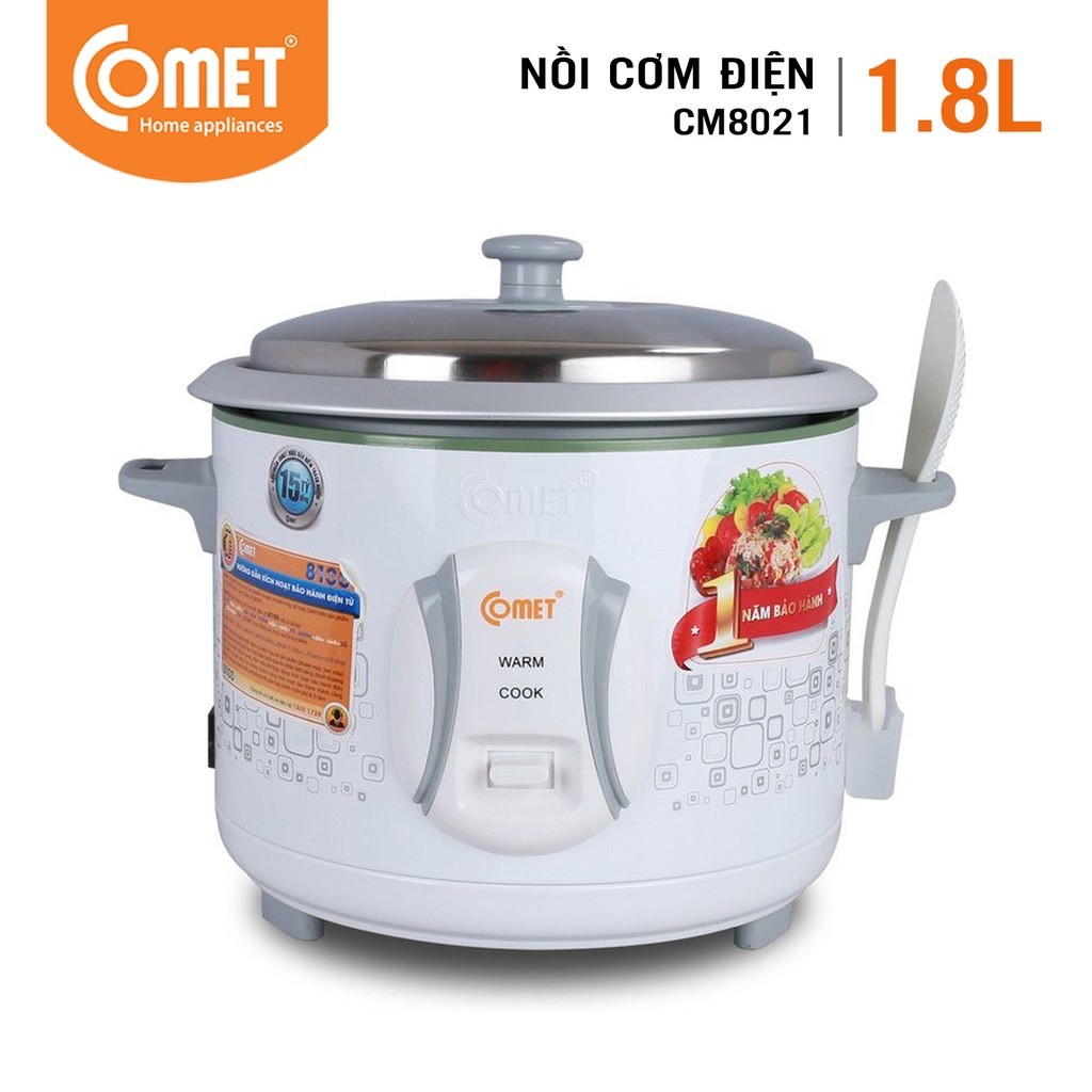 - Nồi cơm điện Comet CM8021 thiết kế sang trọng và hiện đại mang đến cho gia đình bạn những bữa cơm đầm ấm.