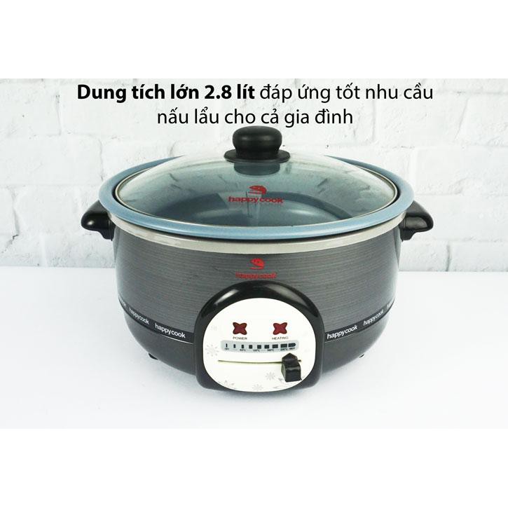 Lẩu điện Happy Cook HCHP-300A có dung tích nấu 2.8 lít có thể sử dụng nấu các món ăn ngon cho gia đình có khoảng 4 thành viên.