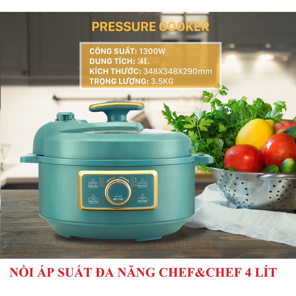 Thiết Bị Điện Gia Dụng > Đồ gia dụng nhà bếp > Nồi áp suất || [Mã ELHADEV giảm 4% đơn 300K] NỒI ÁP SUẤT ĐA NĂNG CHEF&CHEF CH-689VN 4 LÍT VỚI NÚT XẢ ÁP AN TOÀNCòn hàng