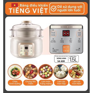 Nồi Nấu Cháo, Chưng Yến Nồi Hầm Chậm Và Hấp Cách Thủy Đa Năng Song Anh A600