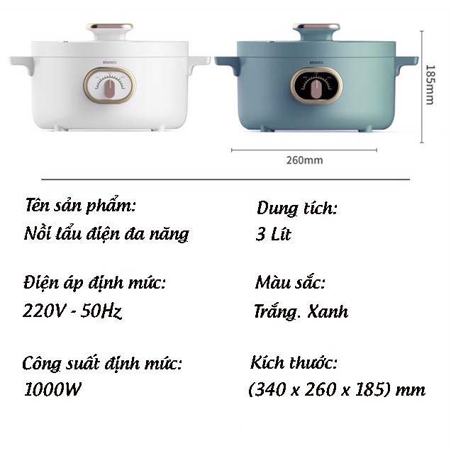 Giới thiệu [Mã ELHADEV giảm 4% đơn 300K] Nồi Lẩu Điện Đa Năng Chống Dính Công Suất 1000W Dung Tích 3 Lít Bảo Hành 6 Tháng