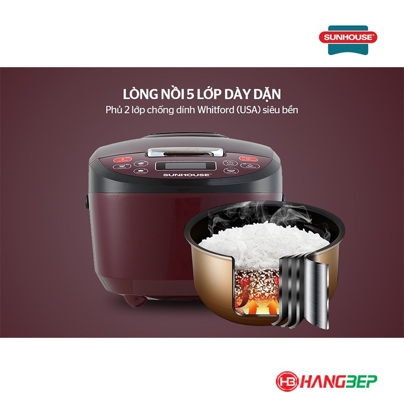 [Mã ELHADEV giảm 4% đơn 300K] Nồi cơm điện tử chống dính 1.8 lít Sunhouse SHD8909