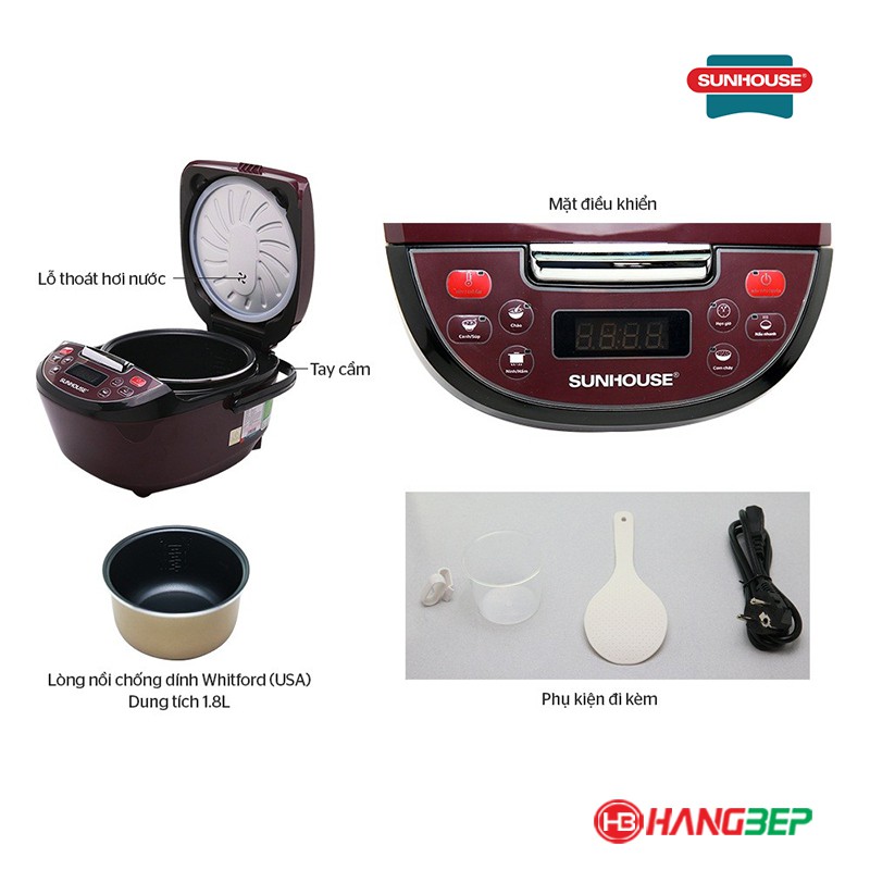 ✅ Nồi cơm điện tử 1.8L SUNHOUSE SHD8909 là lựa chọn hoàn hảo cho bữa cơm gia đình. Với kiểu dáng hiện đại, chức năng đa dạng, nồi đáp ứng tất cả nhu cầu của mọi thành viên trong gia đình từ nấu cơm, nấu cháo/sữa… đến làm bánh, làm soup, hấp…