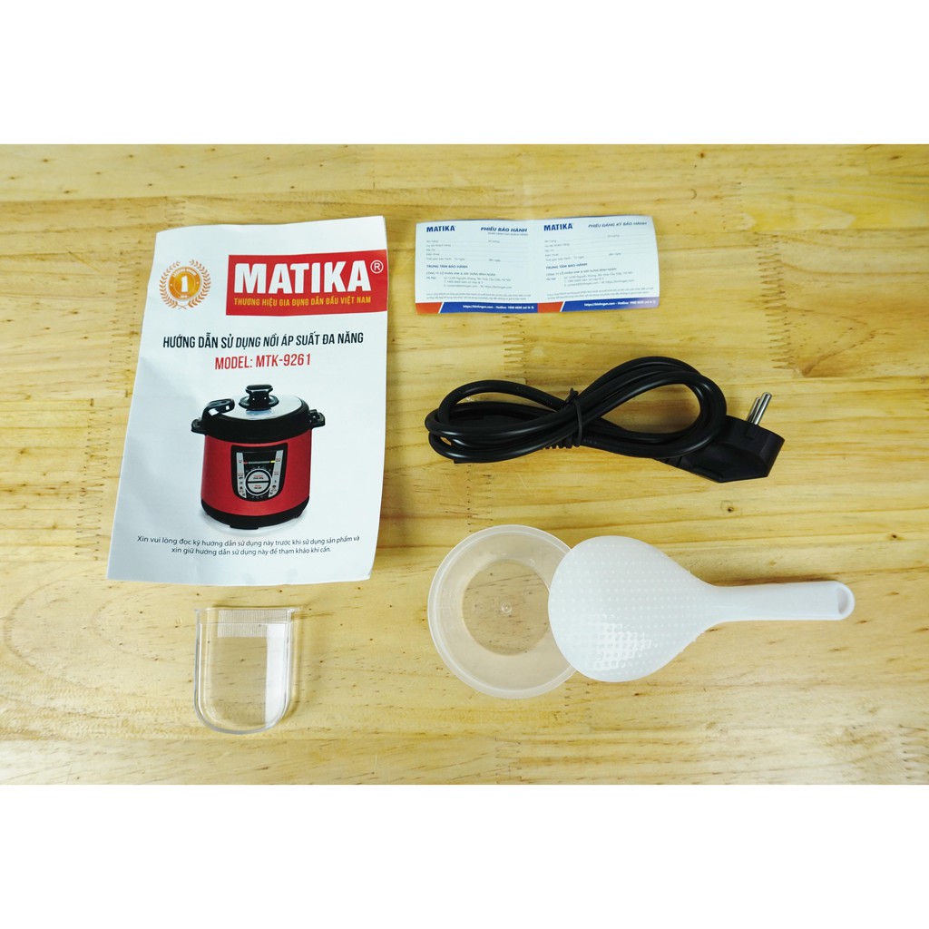 Giới thiệu [Mã ELHADEV giảm 4% đơn 300K] Nồi áp suất điện 6 lít Matika MTK-9261 nấu cơm, cháo, soup, hầm gân, giữ ấm