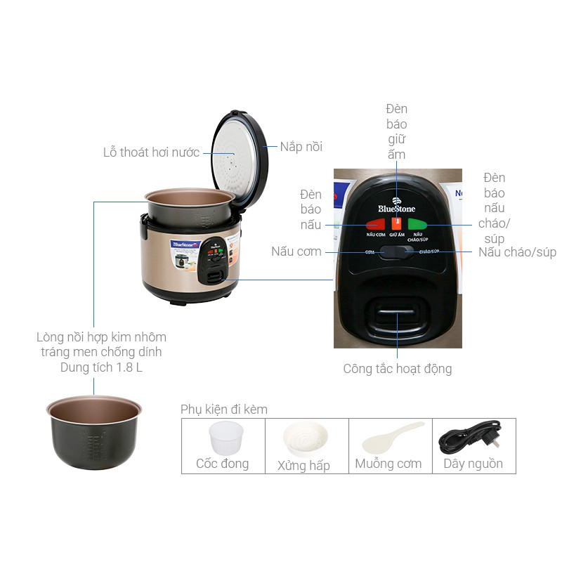 Thương hiệu: Bluestone | Xem thêm các sản phẩm Nồi cơm điện của BluestoneMô tả ngắn