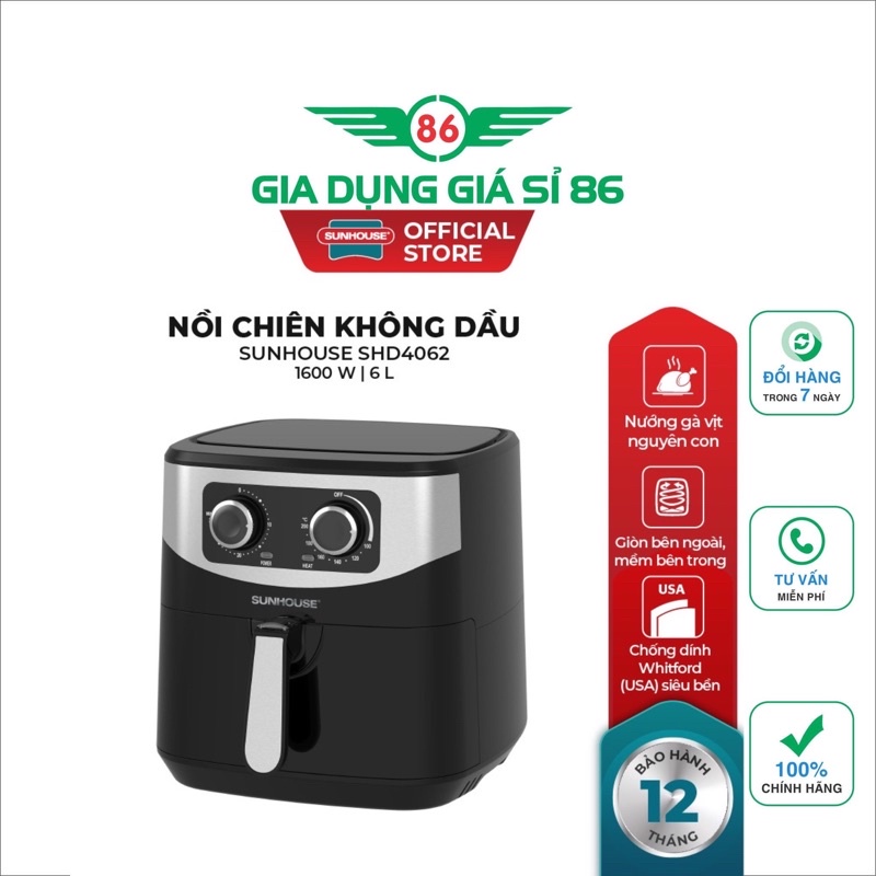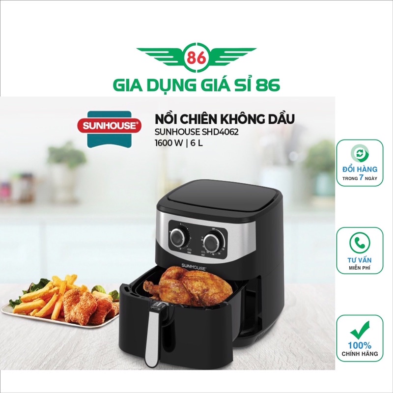 Thiết Bị Điện Gia Dụng > Đồ gia dụng nhà bếp > Nồi chiên không dầu || [Mã ELHADEV giảm 4% đơn 300K] Nồi chiên không dầu 6L SUNHOUSE SHD4062 ( Bảo Hành 12 Tháng)Còn hàng