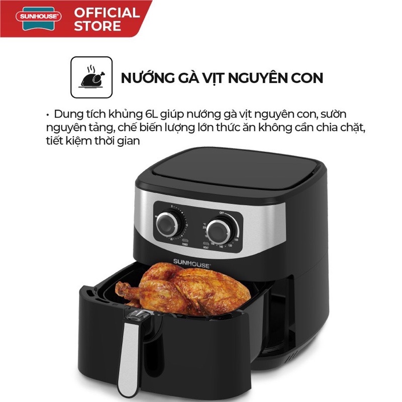 Giới thiệu [Mã ELHADEV giảm 4% đơn 300K] Nồi chiên không dầu 6L SUNHOUSE SHD4062 ( Bảo Hành 12 Tháng)