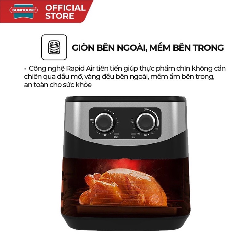 [Mã ELHADEV giảm 4% đơn 300K] Nồi chiên không dầu 6L SUNHOUSE SHD4062 ( Bảo Hành 12 Tháng)