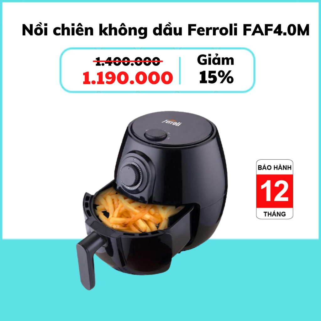 Giới thiệu [Mã ELHADEV giảm 4% đơn 300K] [HÀNG CHÍNH HÃNG] Nồi chiên không dầu Ferroli FAF4.0M 4L – điều khiển cơ (Bảo hành 1 năm)