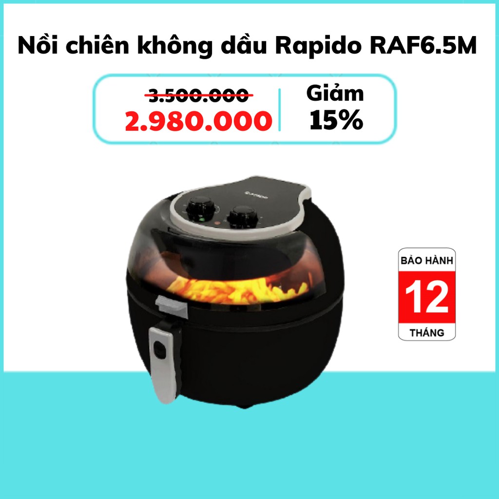Thiết Bị Điện Gia Dụng > Đồ gia dụng nhà bếp > Nồi chiên không dầu || [Mã ELHADEV giảm 4% đơn 300K] [HÀNG CHÍNH HÃNG] Nồi chiên không dầu Rapido RAF6.5M LUX- Điều khiển cơ (Bảo hành 1 năm)Còn hàng