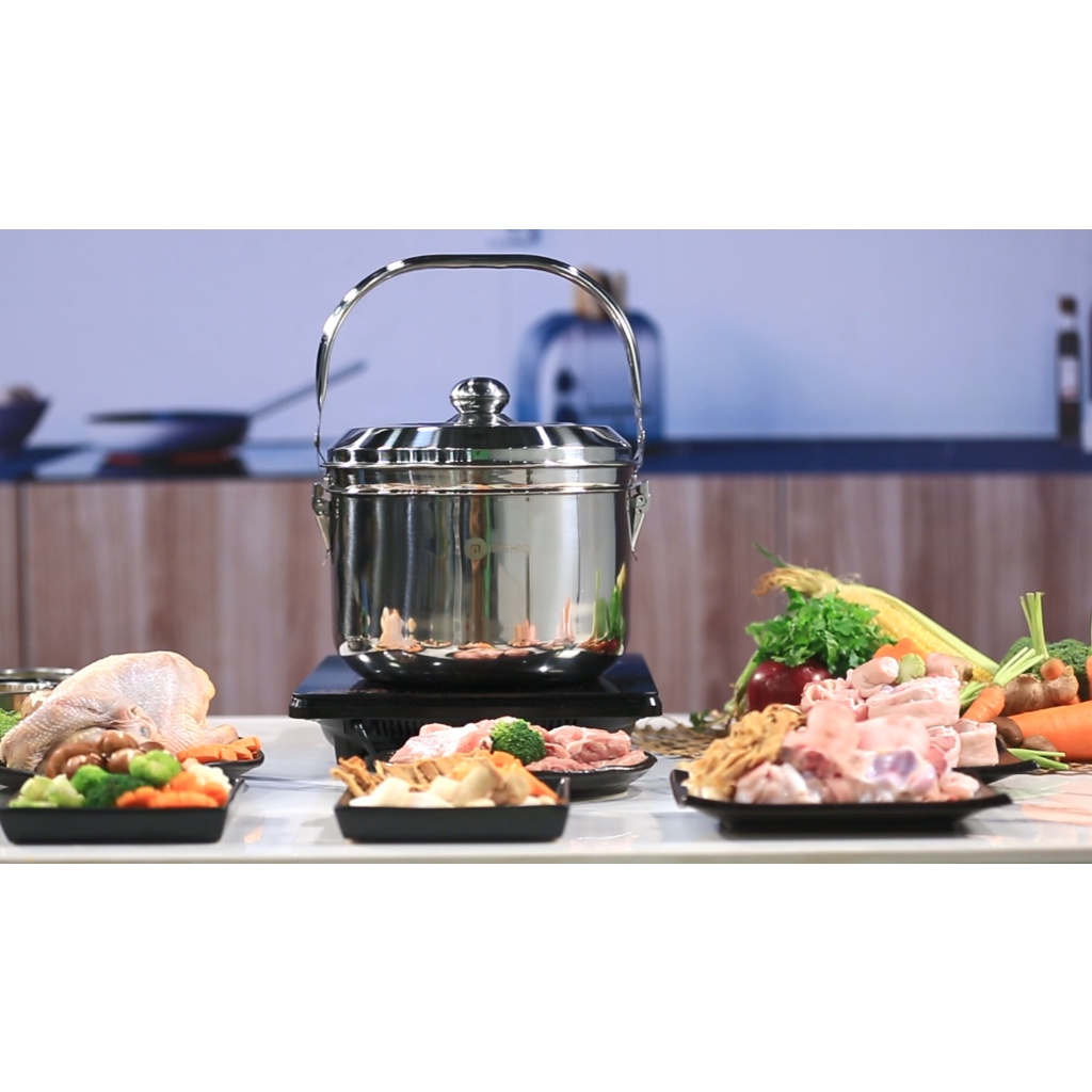 - Sau khi thực phẩm sôi trên bếp từ 5-10 phút tùy thực phẩm, nhấc nồi nấu ra khỏi bếp và đặt vào trong vỏ nồi ủ nhiệt