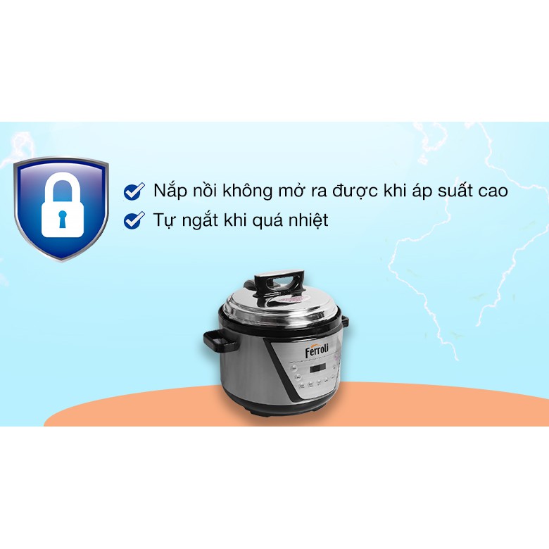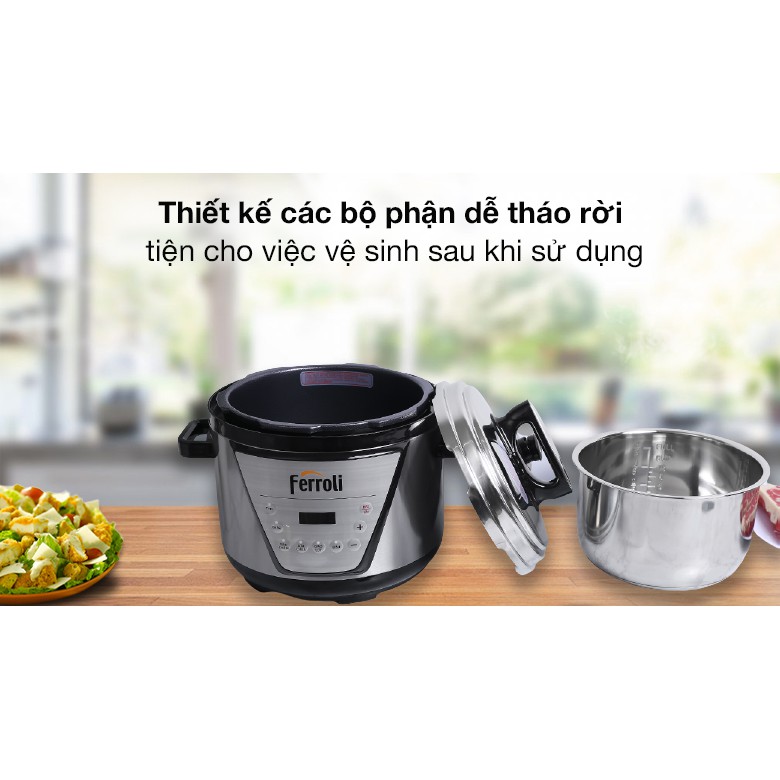 Thiết Bị Điện Gia Dụng > Đồ gia dụng nhà bếp > Nồi áp suất || [Mã ELHADEV giảm 4% đơn 300K] [HÀNG CHÍNH HÃNG] Nồi áp suất điện 5 lít đa năng Ferroli FPC900-D (Bảo hành 1 năm)Còn hàng