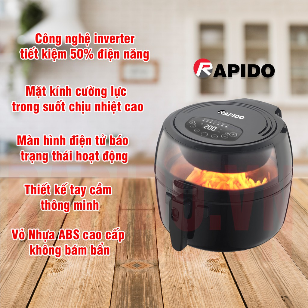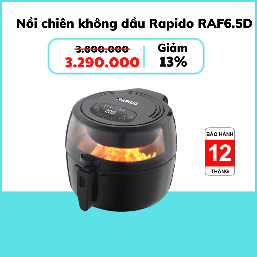 [Mã ELHADEV giảm 4% đơn 300K] [HÀNG CHÍNH HÃNG] Nồi chiên không dầu Rapido RAF6.5D-Điều khiển điện tử (Bảo hành 1 năm)