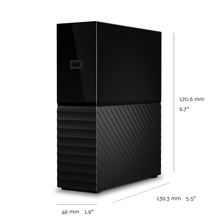 Dòng ổ cứng ngoài 3.5 inch WD My Book 8TB thích hợp để bàn cho nhu cầu lưu trữ phim ảnh, tài liệu... sử dụng gắn máy tính bàn, máy tính xách tay, Tivi, đầu HD, đầu thu camera...Với mức dung lượng 3TB bạn có thể lưu trữ tới 2 triệu bài hát, hơn 2.3 triệu bức ảnh hay 640 giờ video HD. Thiết bị là giải pháp hoàn hảo để lưu trữ, bảo vệ và sao lưu dự phòng các dữ liệu như hình ảnh, phim, nhạc và cả hệ điều hành máy tính.