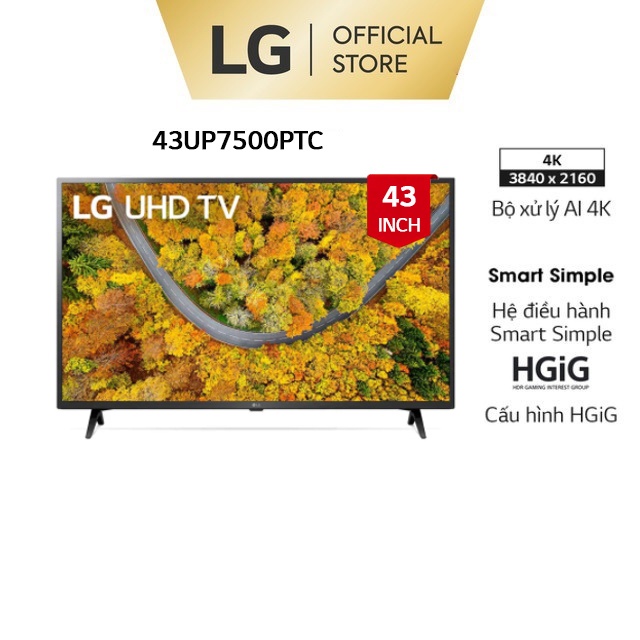 Thiết Bị Điện Gia Dụng > Tivi & Phụ kiện > Tivi || [Mã ELLGHOT giảm 5% đơn 3TR] Smart UHD Tivi LG 43 inch 4K 43UP7500PTC - Model 2021 - Miễn phí lắp đặtCòn hàng