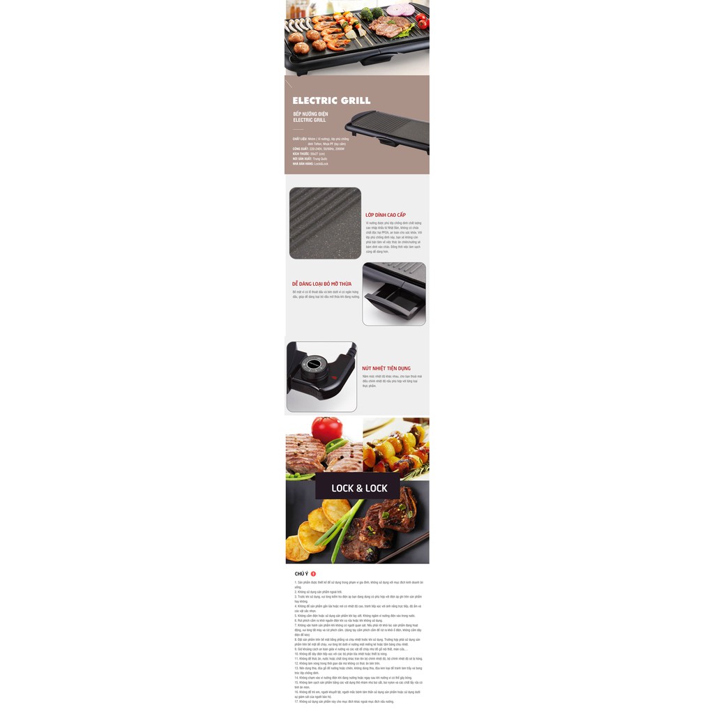 Giới thiệu [Mã ELLOCKWL5 giảm 10% đơn 500K ] Bếp Nướng Điện Lock&Lock Electric Grill (2000W) EJG231