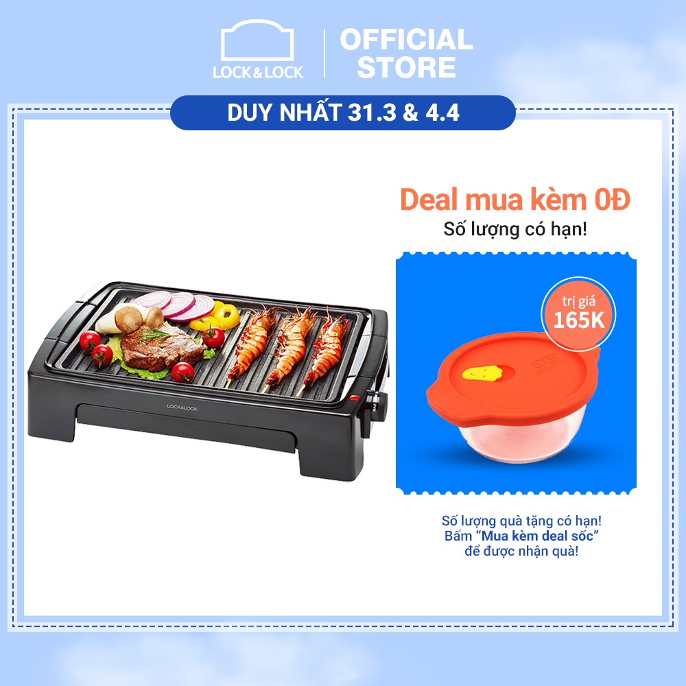 Nhà cửa & Đời sống > Dụng cụ nhà bếp > Lò nướng & phụ kiện || [Mã ELLOCK44 giảm 10% đơn 500K ] Vỉ Nướng Điện Lock&Lock (1300W) [EJG221Còn hàng