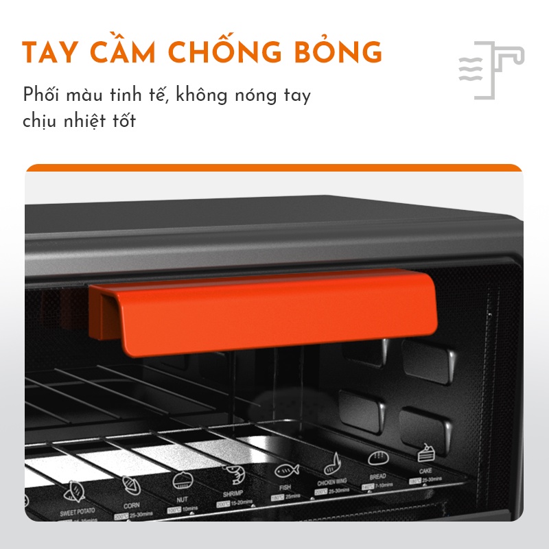 - Điều khiển bằng hai nút xoay, dễ dàng kiểm soát nhiệt và thời gian.
