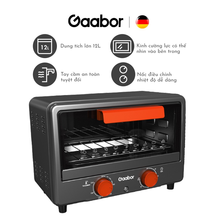 Giới thiệu Lò nướng điện cao cấp GAABOR GTM12Adung tích lớn 12L, dễ sử dụng Hàng chính hãng
