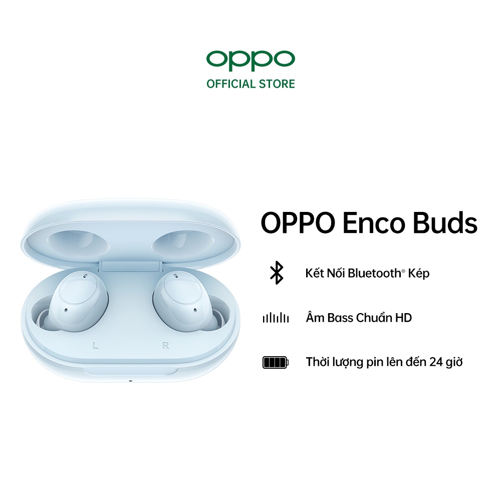 📦 Bộ sản phẩm gồm có: 1 × Bộ tai nghe OPPO EncoBuds và Hộp đựng kiêm sạc pin. 1 × Sách hướng dẫn chào mừng x Sổ bảo hành.
