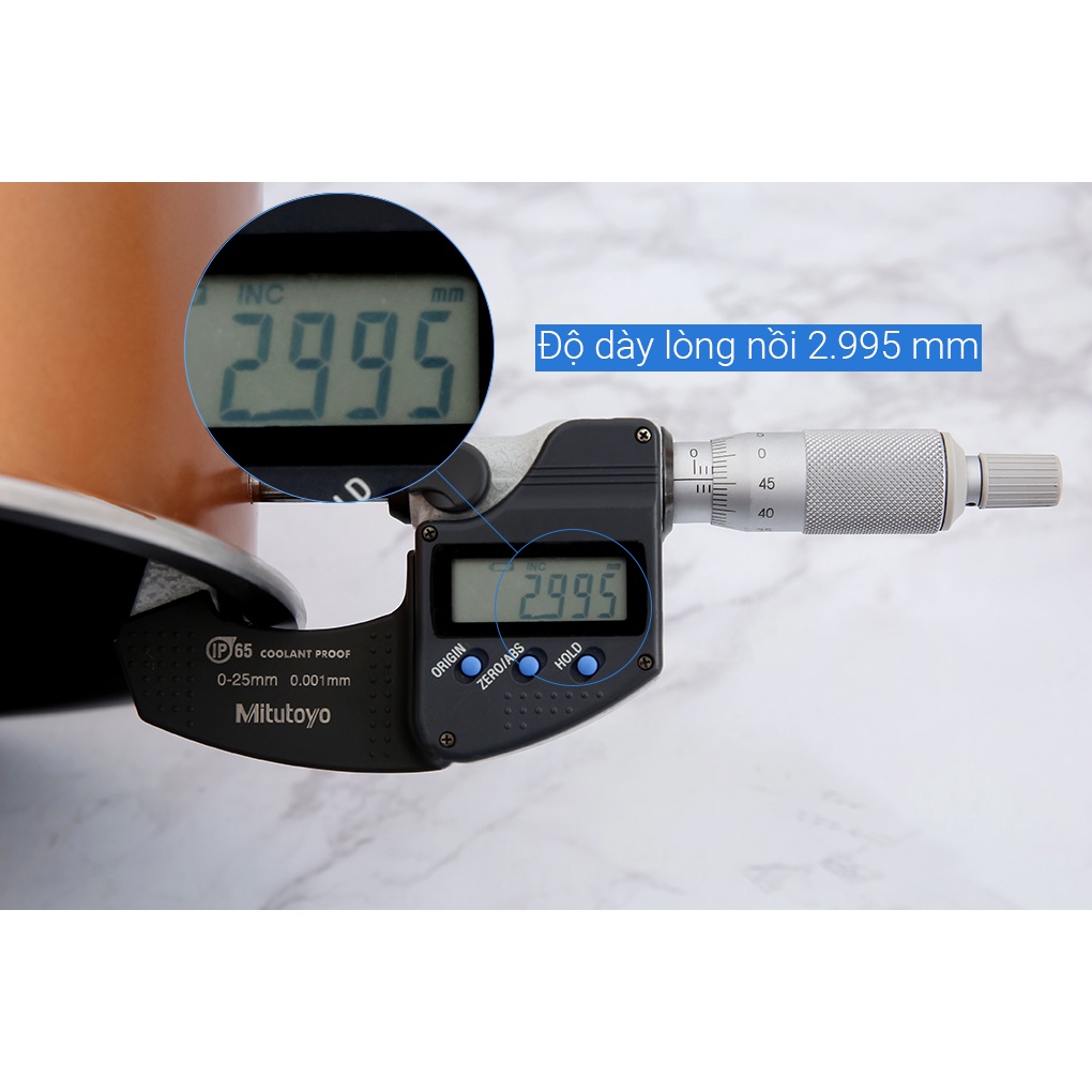 ● Lòng nồi dày 2.995 mm, có 7 lớp bằng hợp kim nhôm phủ chống dính an toàn cho sức khỏe