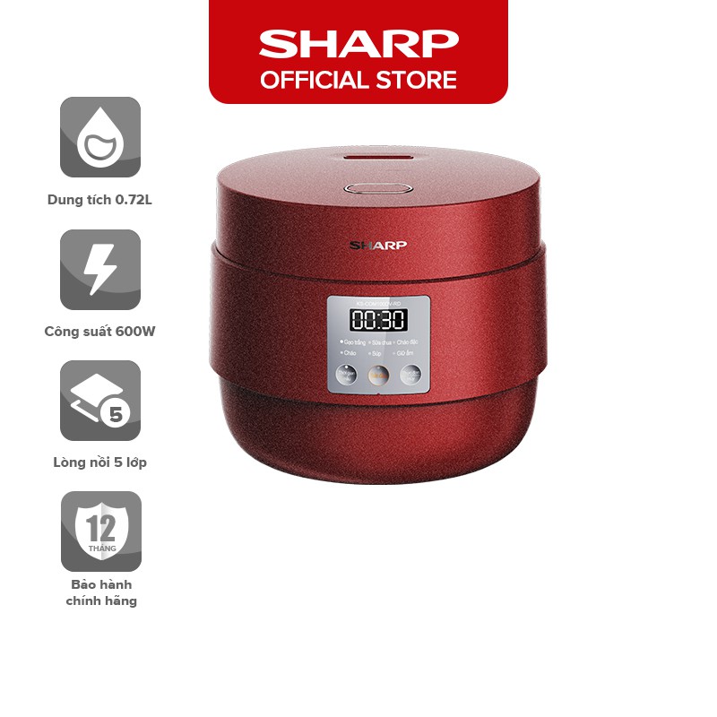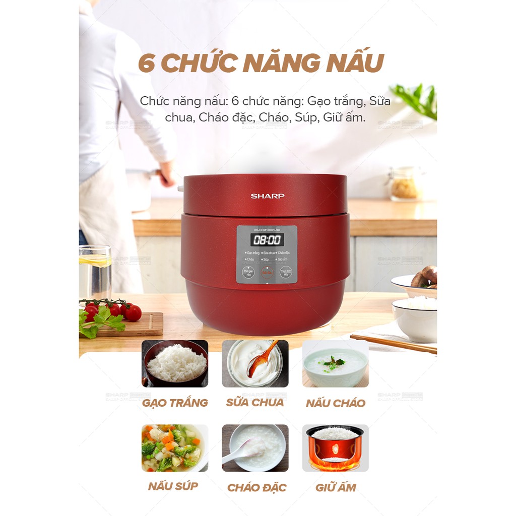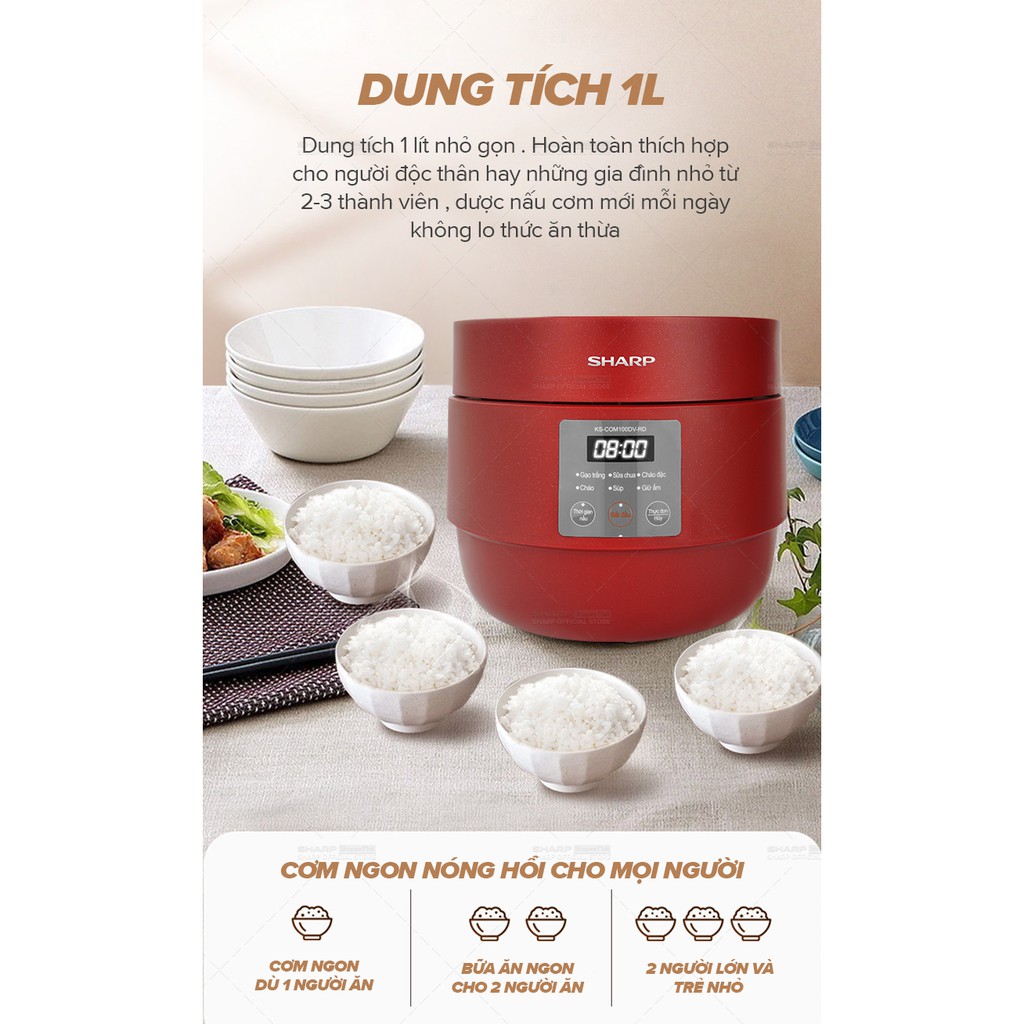 [Mã ELBAU10 giảm 10% đơn 500K]Nồi Cơm Điện Tử Sharp KS-COM100DV-RD (Màu Đỏ) 1 Lít 600W [Hẹn giờ, 6 chế độ nấu]