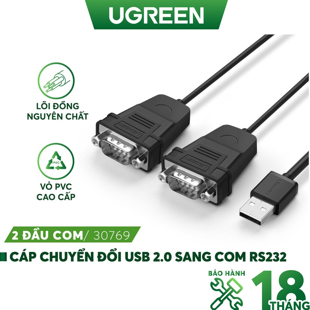 Máy tính & Laptop > Thiết Bị Lưu Trữ > USB & OTG || [Mã ELMALL10 giảm 10% đơn 500K] Cáp chuyển đổi UGREEN US229 USB 2.0 sang COM RS232 đầu đực, chuẩn DB9, dài 1.5mCòn hàng