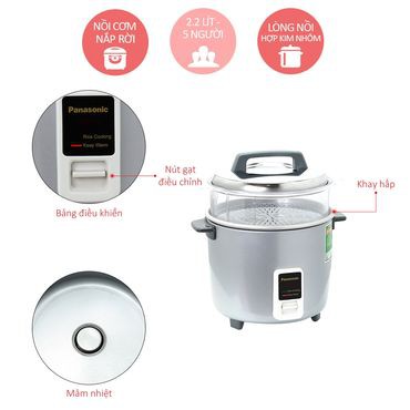 - Nồi cơm điện Panasonic SR-W22GSLRA thiết kế nắp nồi bằng thép không gỉ có chức năng giữ nhiệt, giúp cơm chín nhanh. Nắp có thể tháo rời thân, tiện lợi cho việc lau chùi, vệ sinh