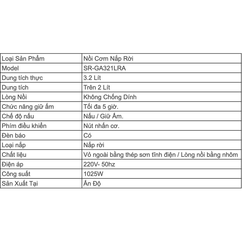 Thiết Bị Điện Gia Dụng > Đồ gia dụng nhà bếp > Nồi cơm điện || [Mã ELHADEV giảm 4% đơn 300K] Nồi Cơm Điện Panasonic SR-GA321LRA - Hàng Chính HãngCòn hàng
