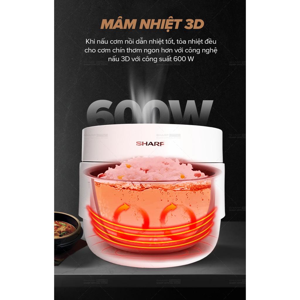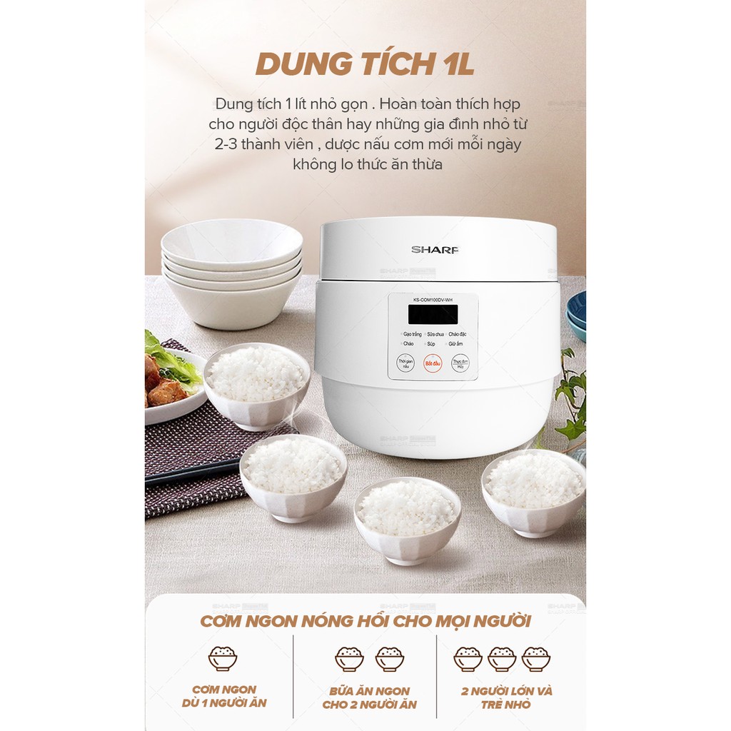 Giới thiệu [Mã ELBAU10 giảm 10% đơn 500K]Nồi Cơm Điện Sharp KS-COM100DV-WH 1L 600W [Hẹn giờ, mâm nhiệt 3D, 6 chức năng nấu]