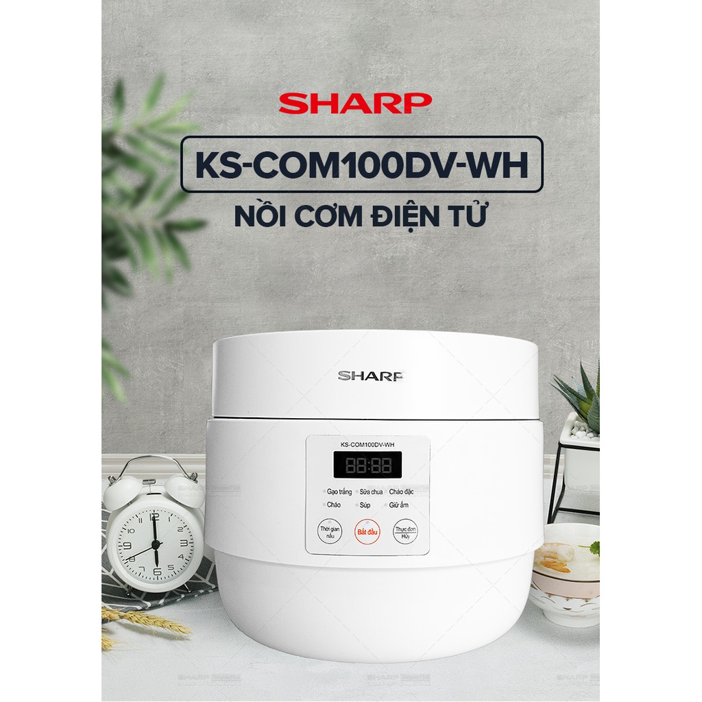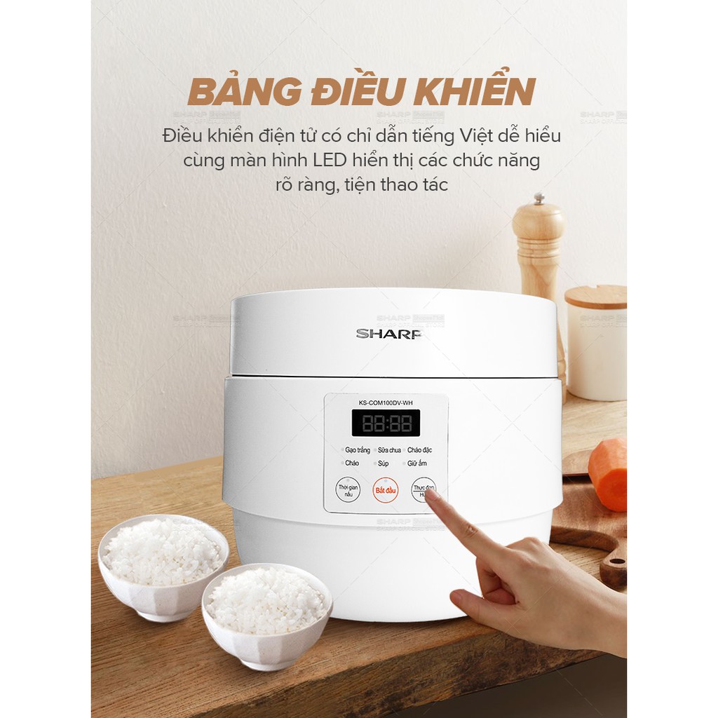 [Mã ELBAU10 giảm 10% đơn 500K]Nồi Cơm Điện Sharp KS-COM100DV-WH 1L 600W [Hẹn giờ, mâm nhiệt 3D, 6 chức năng nấu]