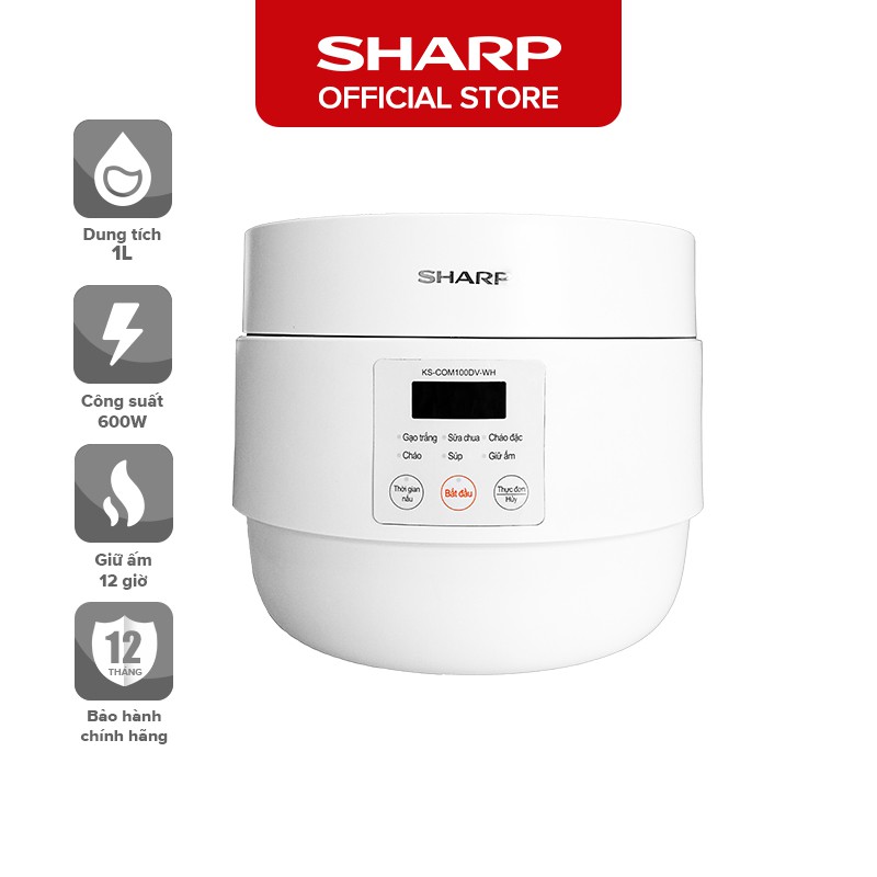 Thiết Bị Điện Gia Dụng > Đồ gia dụng nhà bếp > Nồi cơm điện || [Mã ELMALL10 giảm 10% đơn 500K] Nồi Cơm Điện Sharp KS-COM100DV-WH 1L 600W [Hẹn giờ, mâm nhiệt 3D, 6 chức năng nấu]Còn hàng