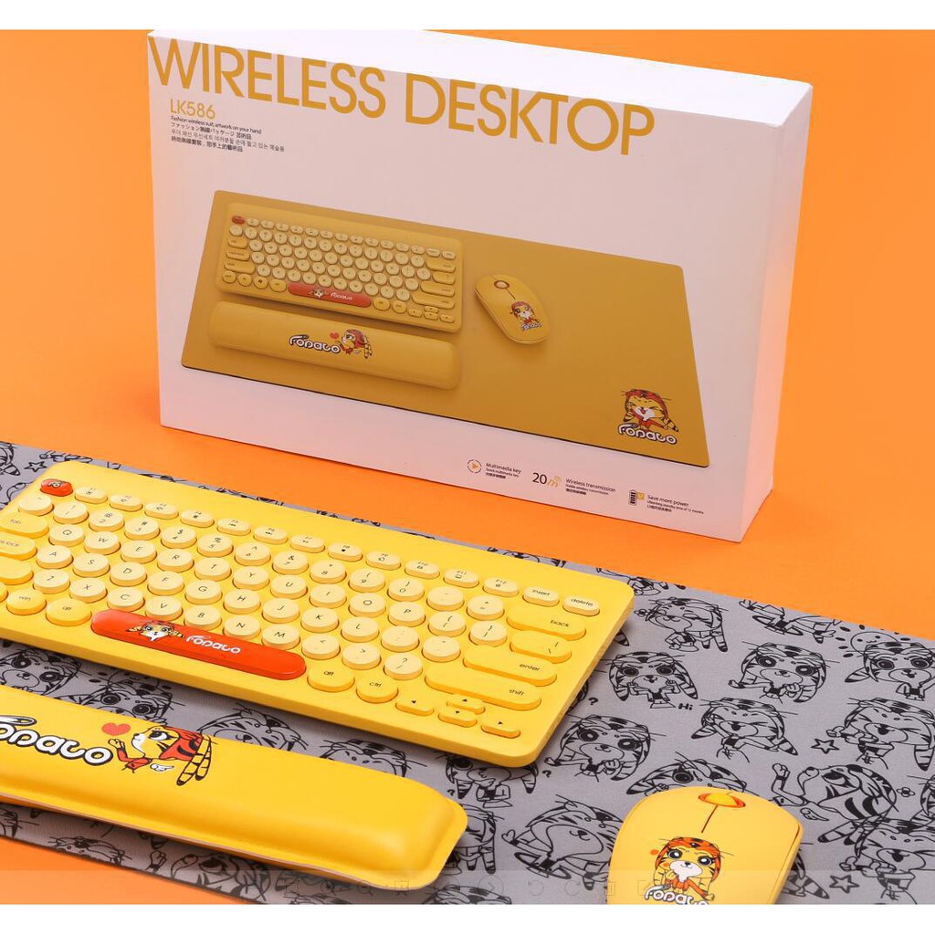 Bộ 4 sản phẩm bàn phím chuột mousepad tay đệm không dây wireless FD LK586 (Vàng)