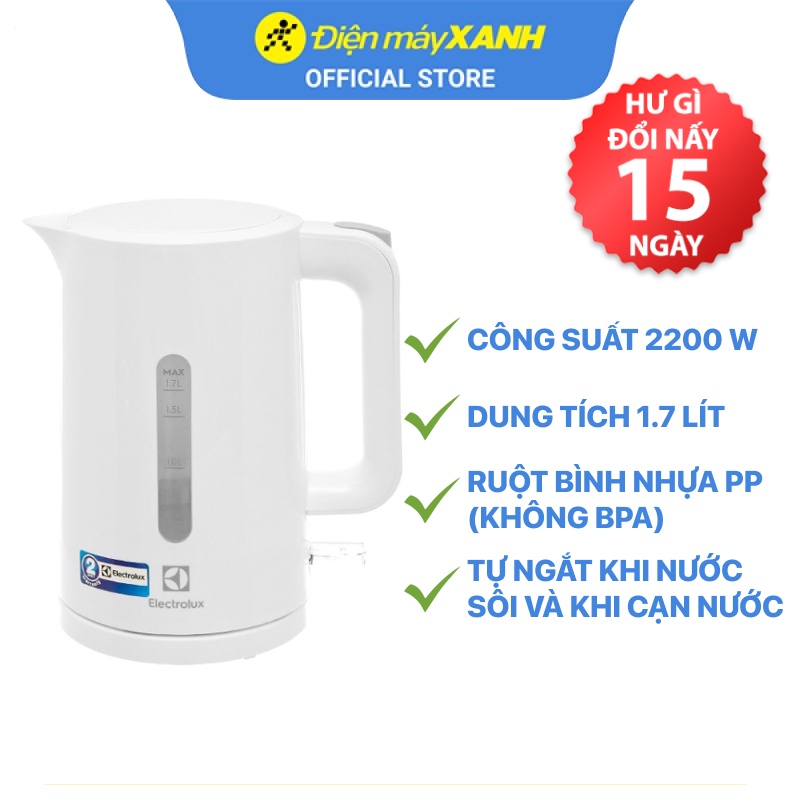 Thiết Bị Điện Gia Dụng > Đồ gia dụng nhà bếp > Ấm đun siêu tốc || [Mã ELMALL150 giảm 8% đơn 500K] Bình đun siêu tốc Electrolux 1.7 lít E2EK1-100WCòn hàng