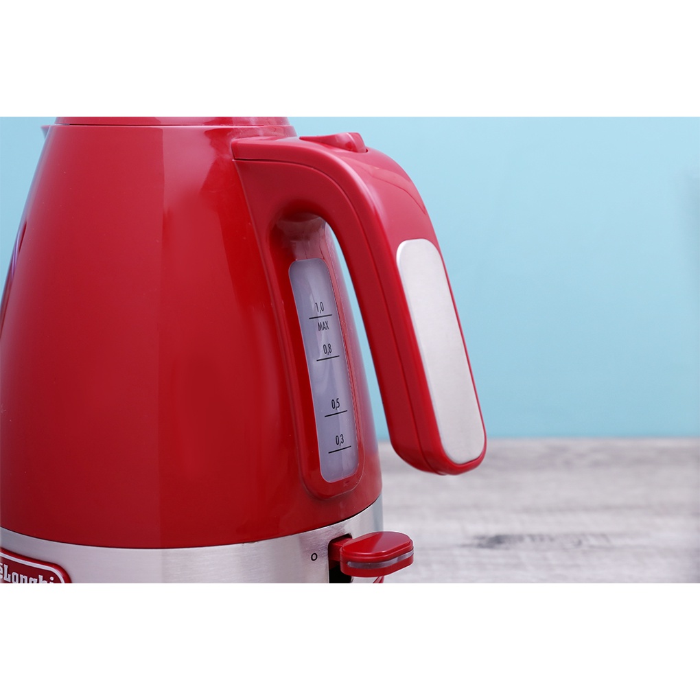 ●Bình đun siêu tốc thương hiệu Delonghi nổi tiếng của Ý, đảm bảo uy tín về chất lượng và thiết kế●Bình đun siêu tốc Delonghi có kiểu dáng mang hơi hướng cổ điển, kết hợp giữa tông màu đỏ và bạc sáng bóng trẻ trung, thời thượng