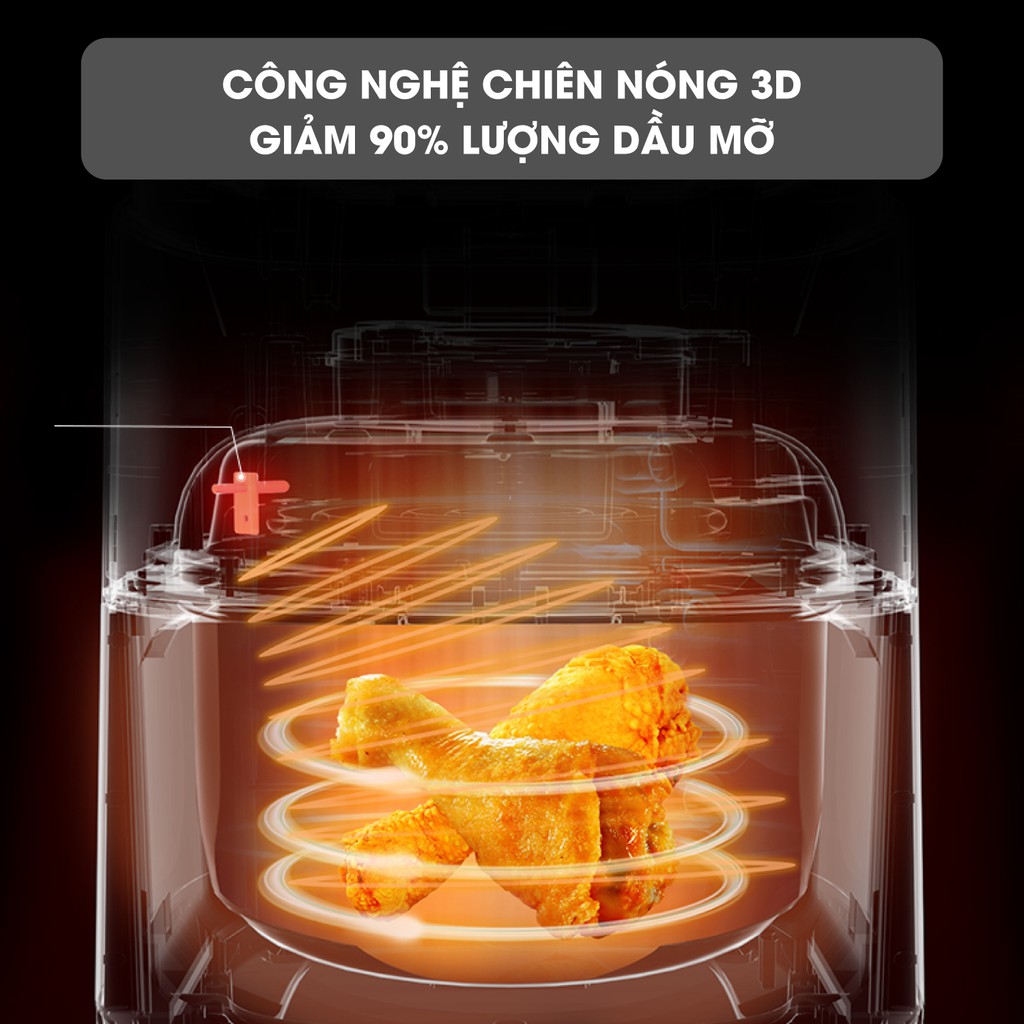 – Công nghệ làm nóng 3D còn giúp làm nóng và nấu chín thực phẩm nhanh chóng. Bạn có thể tiết kiệm thời gian khởi động lò bằng cách làm nóng trước nồi chiên trong vòng chưa đầy 5 phút (Preheat).