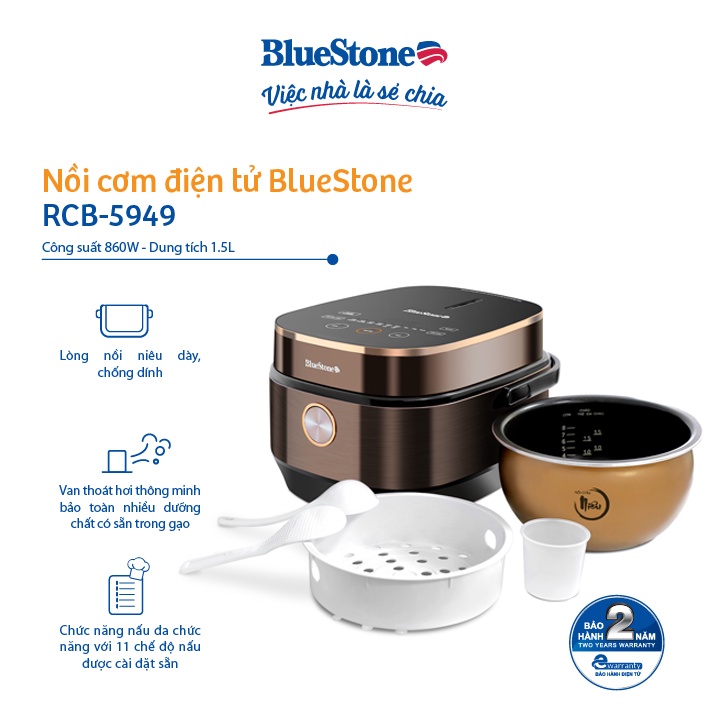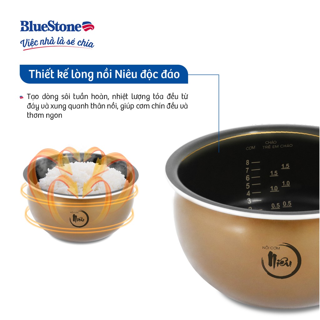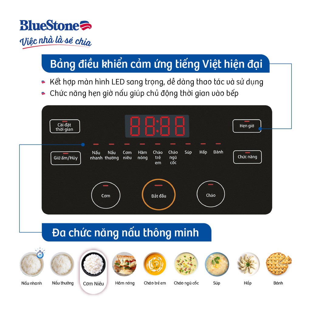 - Nồi cơm điện BlueStone với thiết kiện hiện đại, tích hợp nhiều tính năng, cùng gia đình bạn sẻ chia những bữa cơm thơm ngon mỗi ngày.