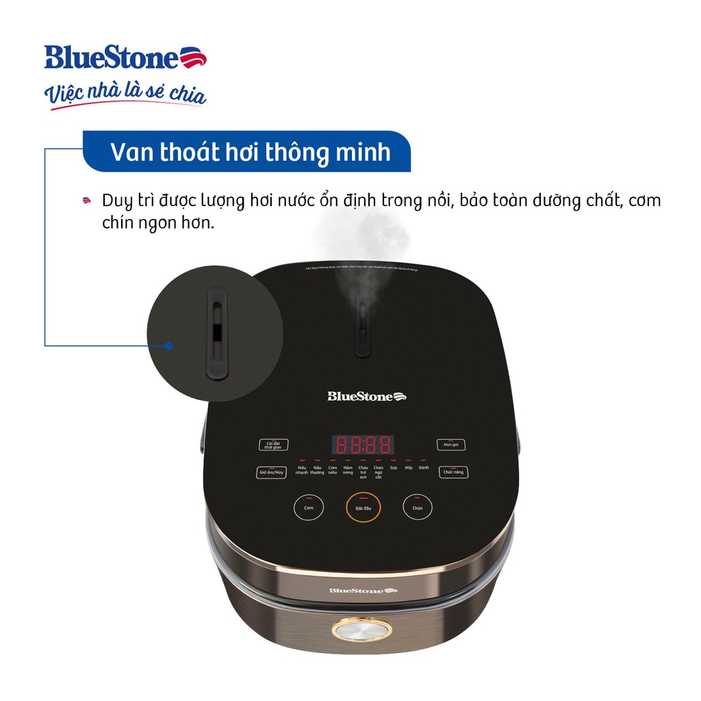 - Đặc biệt, nồi cơm điện tử BlueStone có thiết kế nắp trong có thể tháo rời để vệ sinh, kết hợp van thoát hơi thông minh, duy trì được lượng hơi nước ổn định trong nồi giúp bảo toàn được nhiều dưỡng chất, cơm chín ngon hơn.