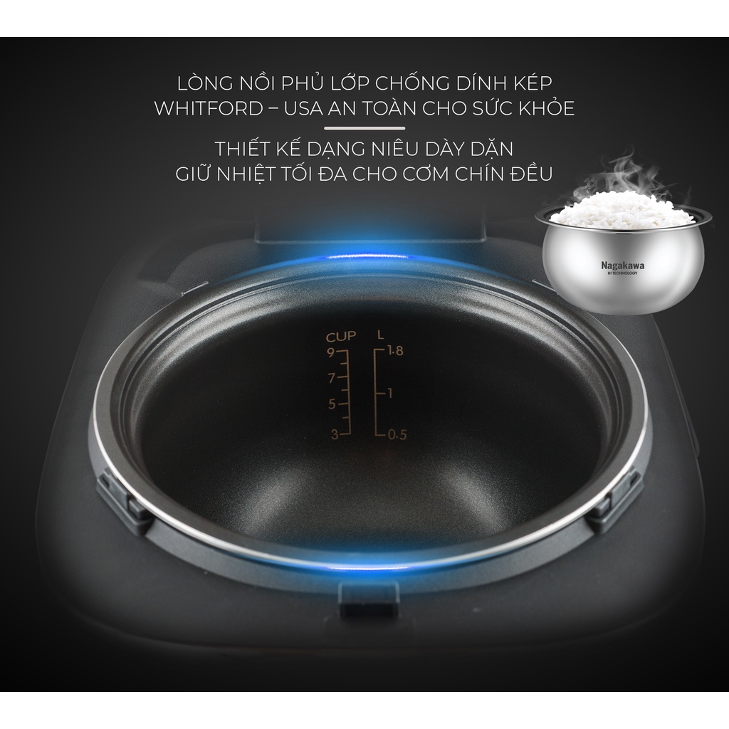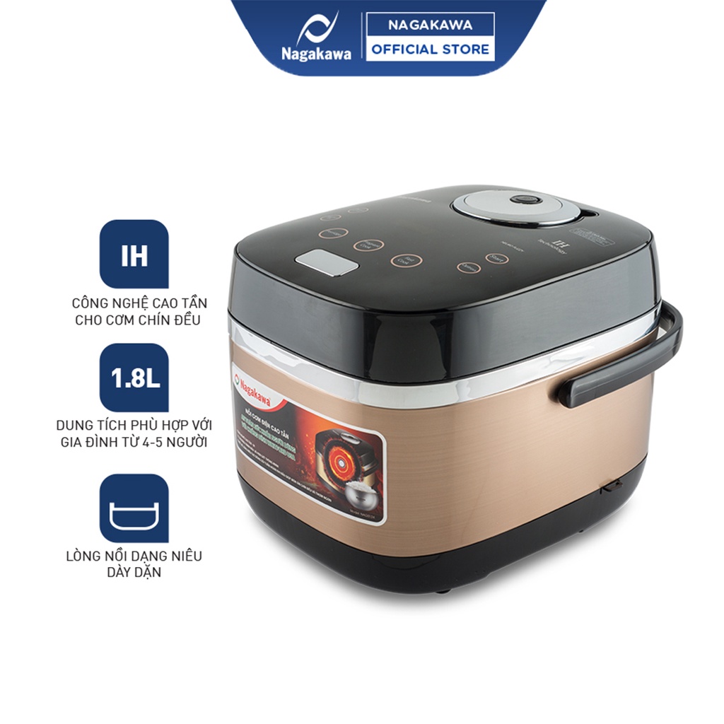 Giới thiệu [Mã ELHADEV giảm 4% đơn 300K] Nồi cơm điện cao tần 1.8L Nagakawa NAG0124