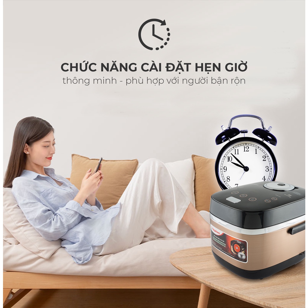 - Nồi Cơm Điện Tử Cao Tần Nagakawa có chức năng cài đặt hẹn giờ phù hợp với người bận rộn, giúp gia đình luôn có cơm nóng sốt đúng thời điểm