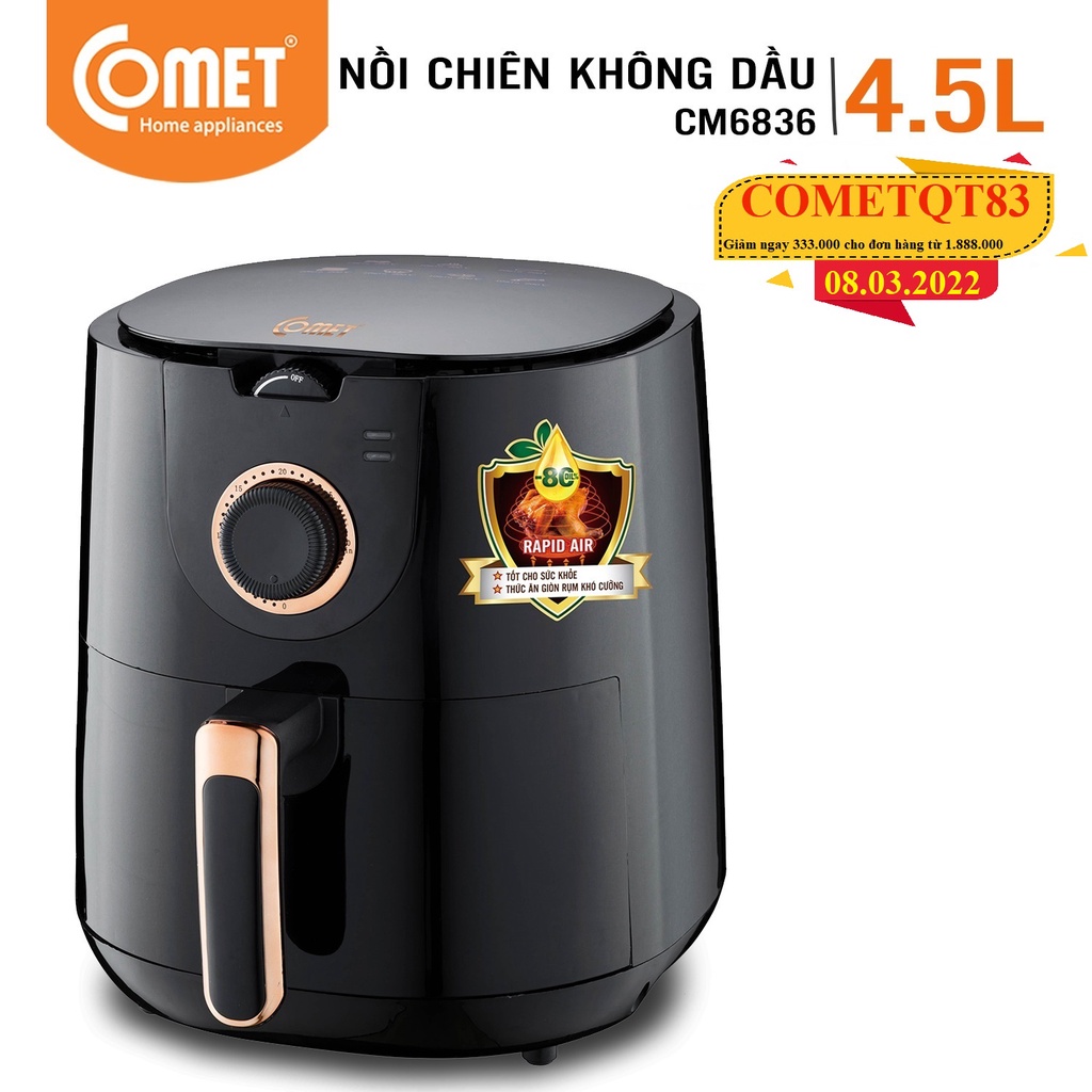 Thiết Bị Điện Gia Dụng > Đồ gia dụng nhà bếp > Nồi chiên không dầu || [Mã ELMALL10 giảm 10% đơn 500K] Nồi chiên không dầu COMET CM6836 - 4,5LCòn hàng