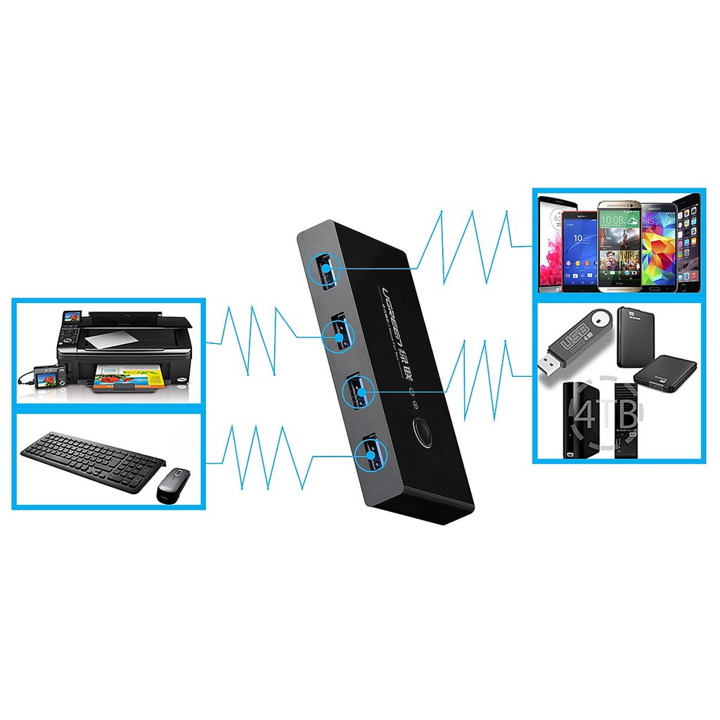 Bộ chuyển mạch (Switch) 2 cổng USB 3.0 chia sang 4 cổng USB 3.0 Ugreen 30768