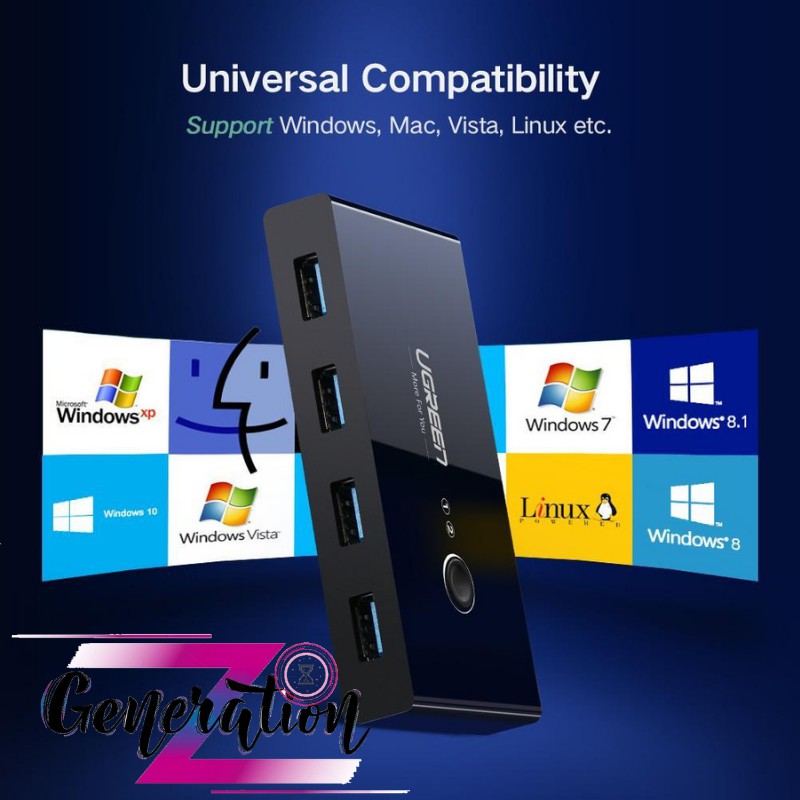 Bộ chuyển mạch (Switch) 2 cổng USB 3.0 chia sang 4 cổng USB 3.0 Ugreen 30768