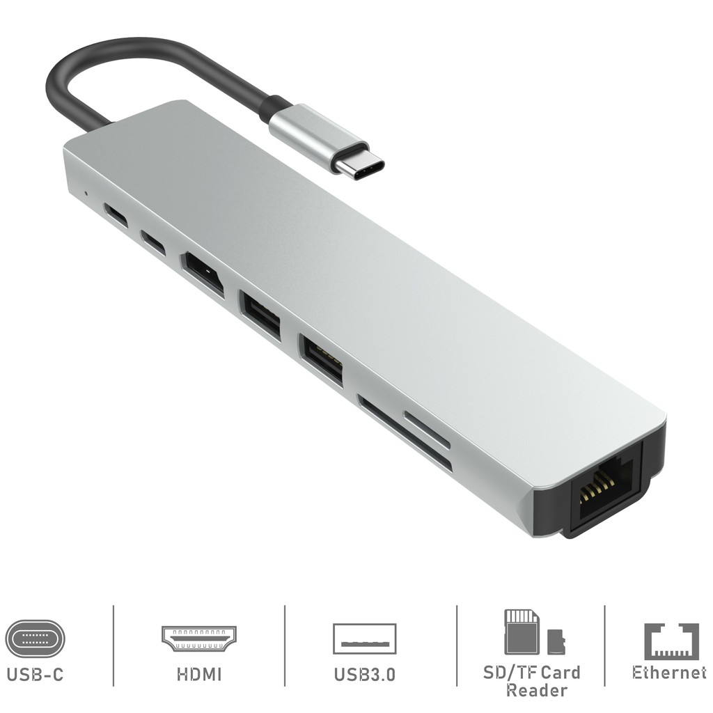 Hub Usb Type-c 8 cổng cho Macbook, Samsung Dex - xuất HDMI, Ethernet, TF, SD, USB 3.0