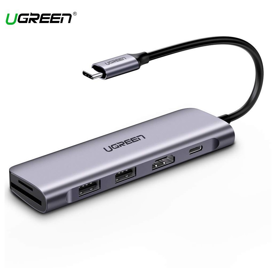 Hub UGREEN Usb-C 6 in 1 Sang HDMI 4K,2 USB 3.0 Ports,SD/TF Card Reader,100W PD 70411