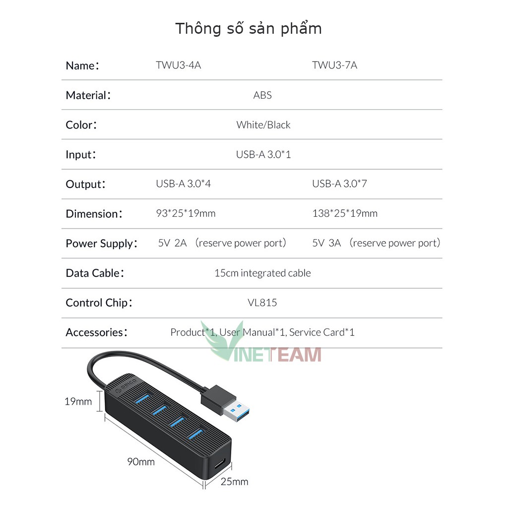 Hub USB 4 Cổng 3.0 ORICO TWU3-4A Splitter Bộ Mở Rộng PC Đa USB Tốc Độ CaoThông số kĩ thuật:Thương hiệu: ORICO