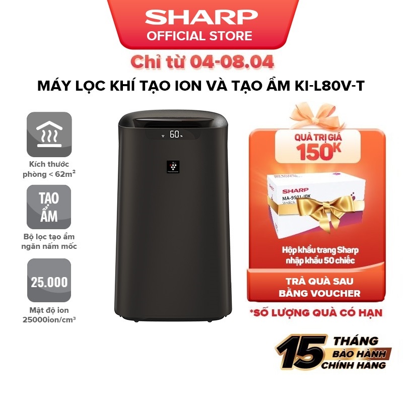 [Mã ELBAU7 giảm 7% đến 1TR]Máy Lọc Khí Tạo Ẩm Sharp KI-L80V-T Remote Control bằng Điện Thoại