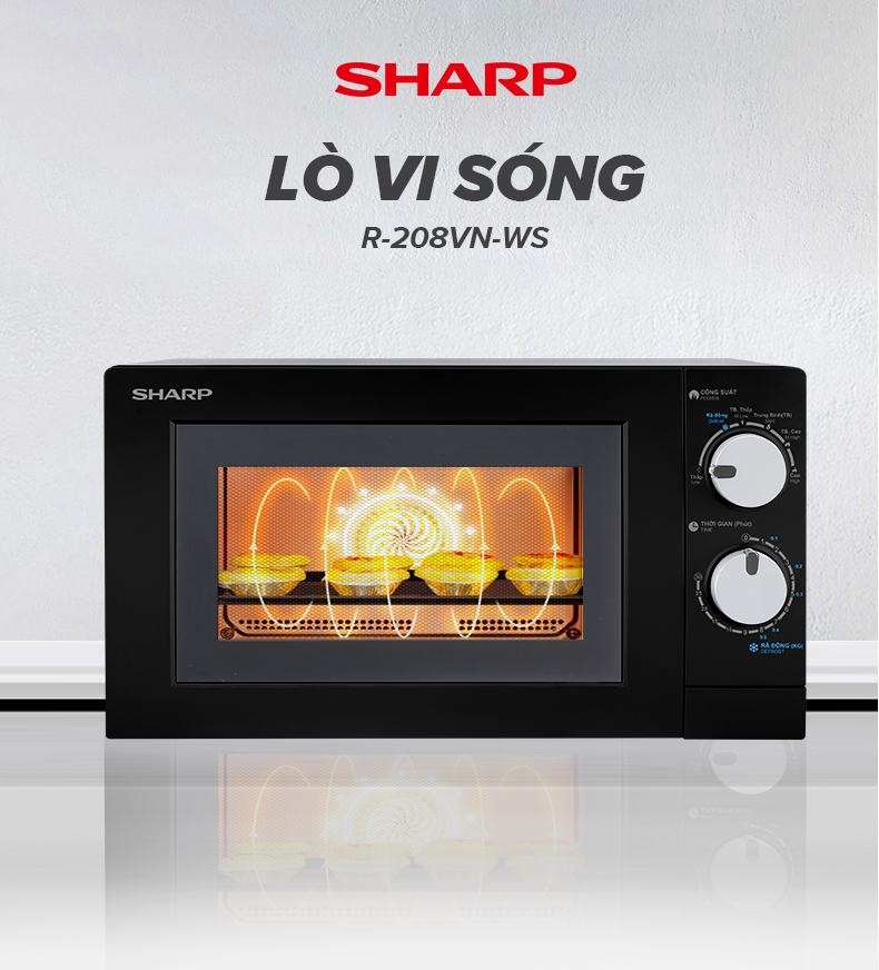 • Lò Vi Sóng Sharp 20 Lít R-208VN-WS• Dung tích 20L; Công suất 700W, công suất tối đa: 1200W